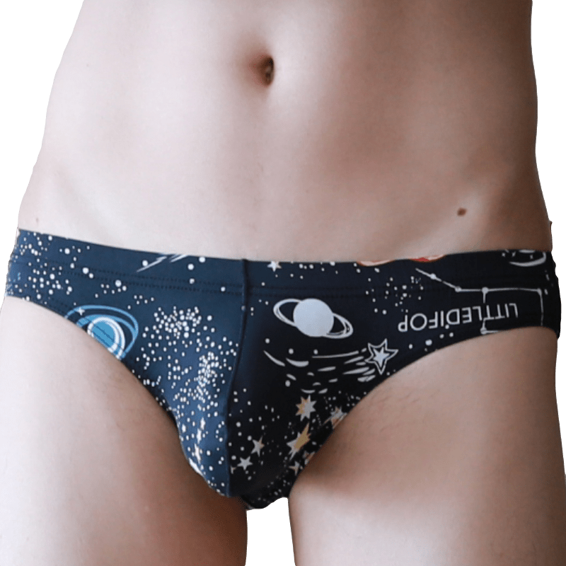 Make a statement in these fun pop bikini briefs with vibrant graphic designs. They will hold snug to your skin. have an ultra low-rise cut. and have a convex pouch that is specifically designed to extend and enhance your bulge. You'll be sure to impress anyone lucky enough to see you wearing a pair.