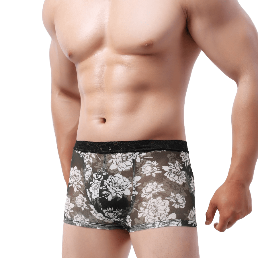 These lace flower trunks are cute. thin. sheer. and gorgeous! With a low-rise fit. elegant floral designs. and intricately laced waist. they will make a fabulous addition to your collection.  Flaunt your body as you slip on this sexy pair that won't leave much to the imagination.