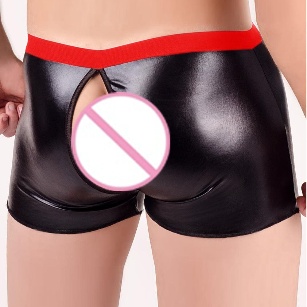 These Open Crotch PU Leather Boxer Shorts are made with a PU leather/spandex blend for the ultimate in comfort and style. It will cradle your package and allow you easy access (front and back) whenever you may need it...