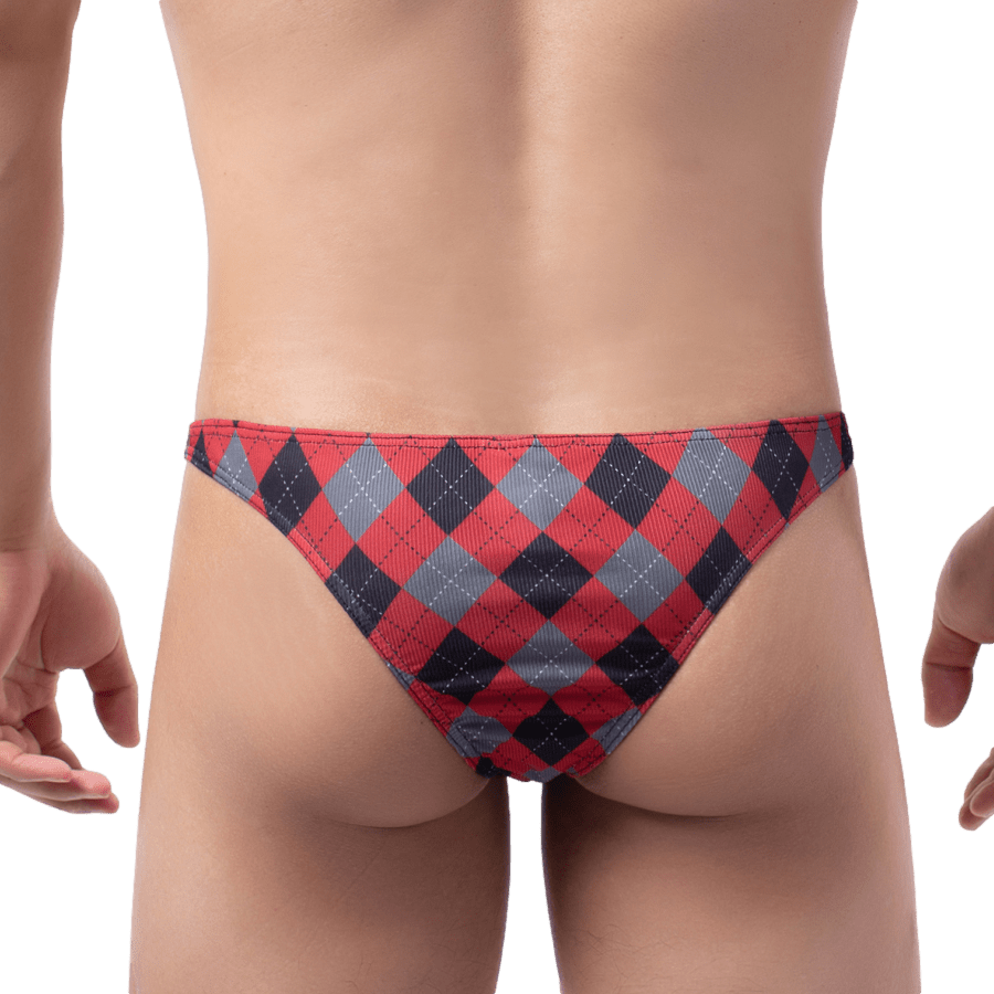Stand out in these plaid thongs that are low-rise. enhancing. and sexy! They have a convex pouch to lift your package and a snug rear that covers just enough. For guys who want to try something different.